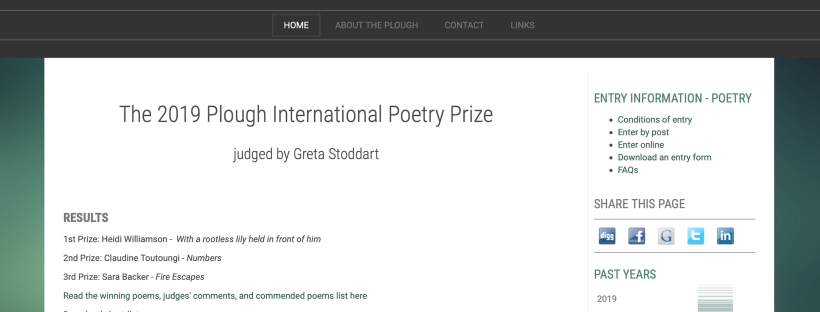 With so much awful news at the moment, I almost missed the announcement of the winners and shortlisted poems in the Plough Poetry Prize. I’m delighted to see my friend Claudine Toutoungi winning second prize with Numbers, which you can read, alongside the other prize-winning poems, here. And it was lovely to know that my poem The L word made the shortlist.