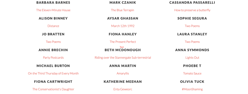 I’m so grateful to the editors, Georgi Gill and Louise Peterkin, for their faith in this poem, and for their encouragement with my previous unsuccessful submissions. Thanks also to all those poets who’ve also shared their stories of rejection and perseverance, which have given me the confidence and determination to keep going.